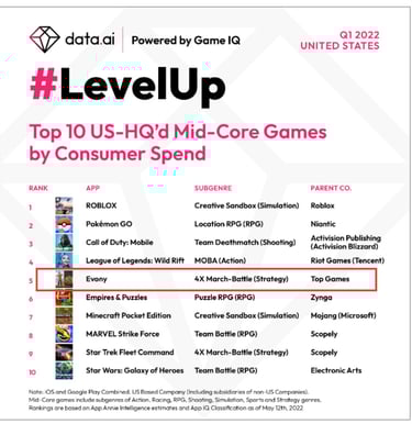 In 2022, Top Games Inc. won honors for its success. According to Data.ai, "Evony" ranked fifth among the top 10 core games in the United States. The company also released several other successful games, such as "Infinity Clan," "Mafia Origin," "Kings Legion," "POZ," and "Mafia Origin."